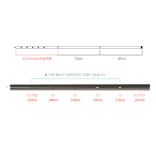 KZM 5 Stage Adjustable 250cm Aluminum Tarp Pole