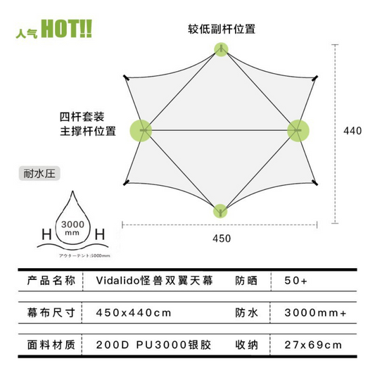 Vidalido 8 Point Monster Tarp with 2.4M Pole