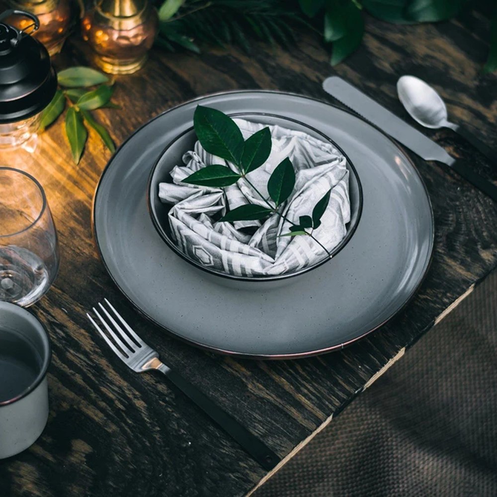 Minimalist, utilitarian, and modern. The Flatware Set brings something different to the table. Choose from Polished or Matte finishes for a one-of-a-kind look that plays beautifully against our enamelware.