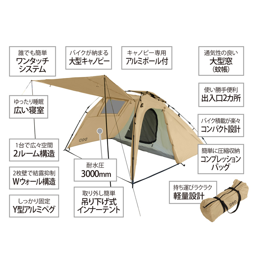 This tent designed for motorcyclists. Separate bedroom and living area so you can use the area for maintenance of your trusty car during touring as well. Designed to not exceed the distance of the motorcycle handlebars, easy to ride and carry on every trip.