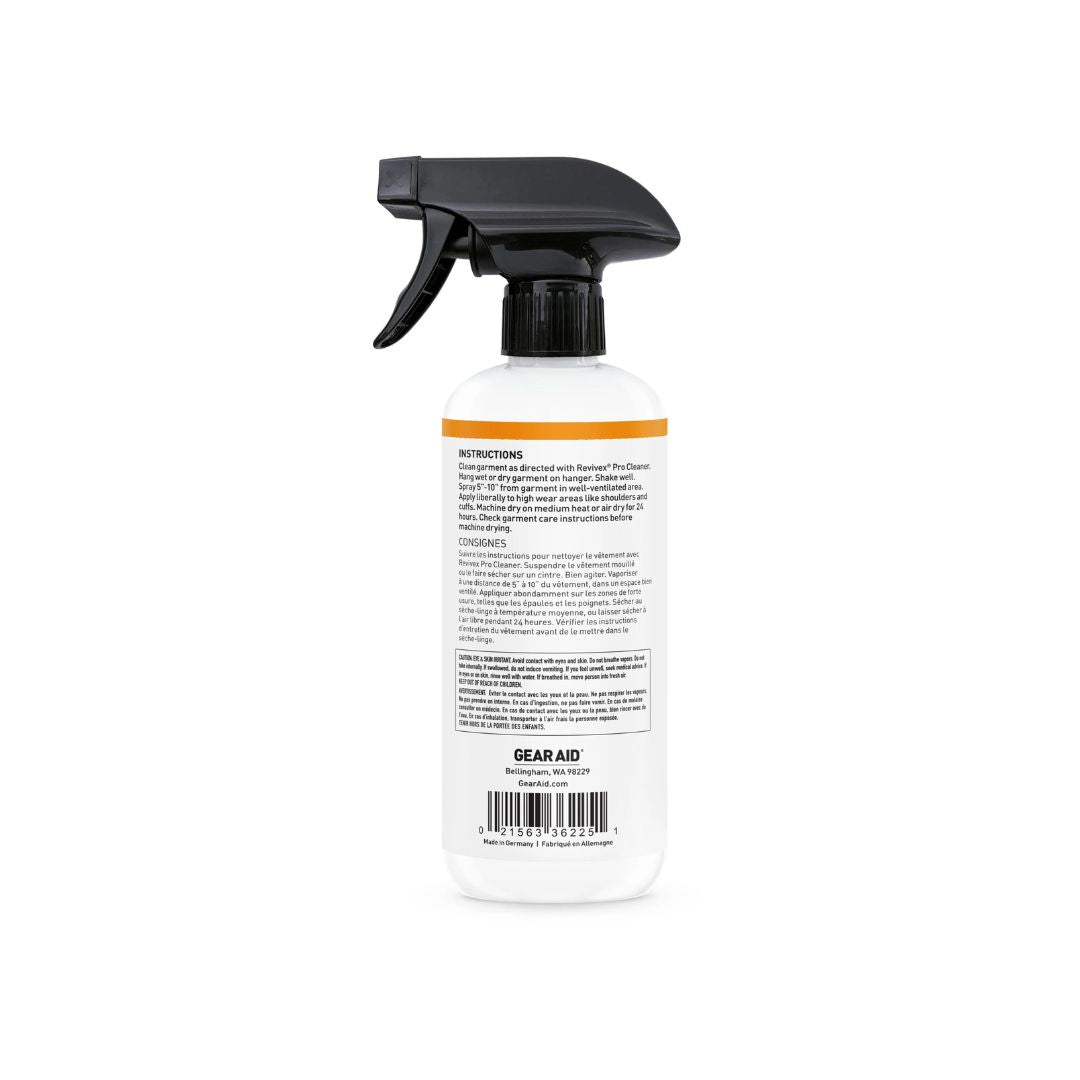 Clean garment as directed with Revivex® Pro Cleaner. Hang wet or dry garment on hanger. Shake well. Spray 5”-10” from garment in well-ventilated area. Apply liberally to high wear areas like shoulders and cuffs. Machine dry on medium heat or air dry for 24 hours. Check garment care instructions before machine drying.