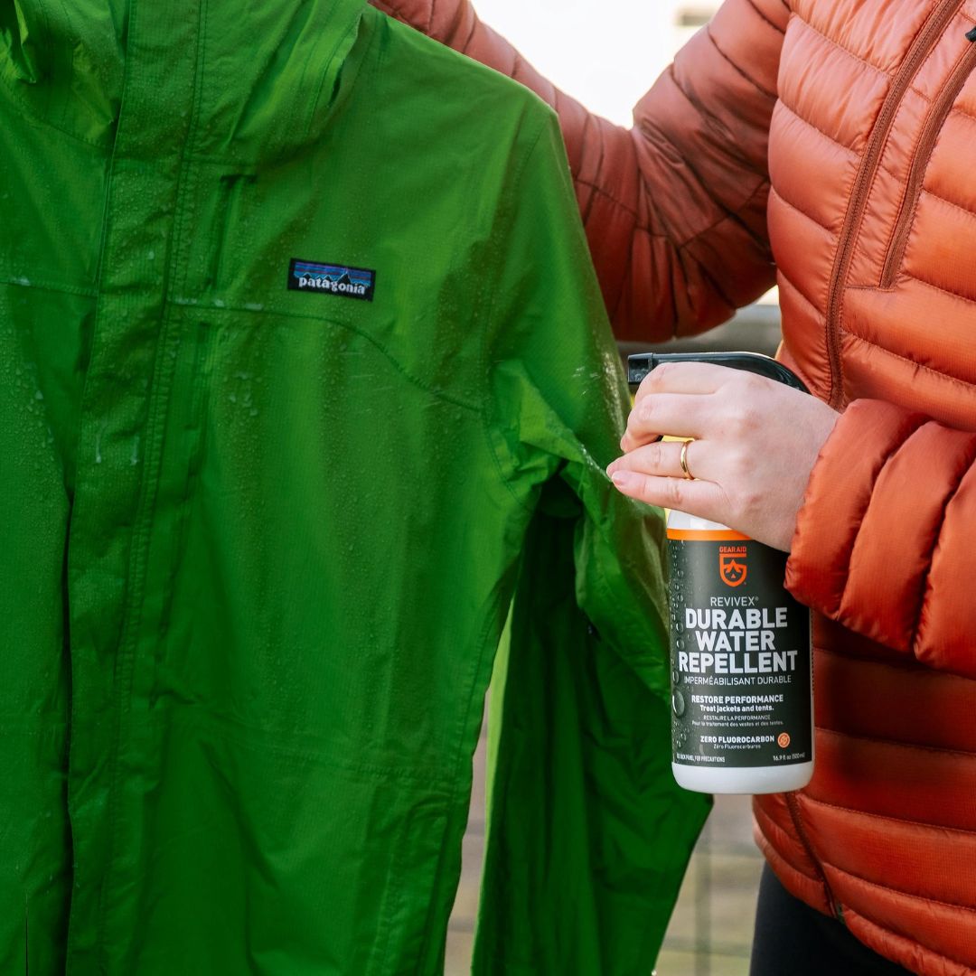 Revivex Durable Water Repellent is a spray-on treatment that restores the DWR coating on technical gear such as GORE-TEX jackets, rainwear, and ski pants. The PFAS-free formula repels water, dirt, and stains, maximizes breathability, and can be washed and air-dried. Over time, DWR on technical gear wears off, and the fabric gets dirty and absorbs water. Regular reproofing treatment of rainwear, soft shells, ski pants, and GORE-TEX jackets is highly recommended to continuously repel water. Whatever your adventure is, Revivex Durable Water Repellent provides protection in rain and snow.