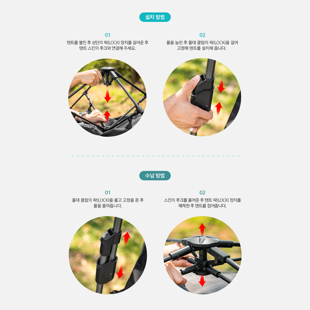 - Component : skin, foot seat, mesh shelf, steel peg X8ea, string X5ea, carry bag