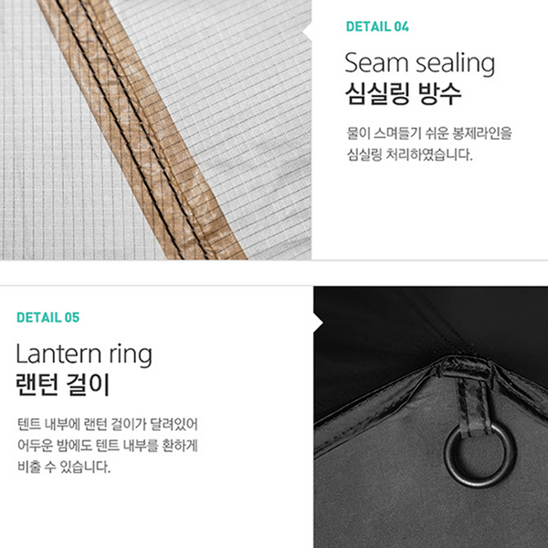 - Inner tent - Black color: P/T 68D 190T 450mm PU W/R | White Color: P/T 68D 185T 450mm