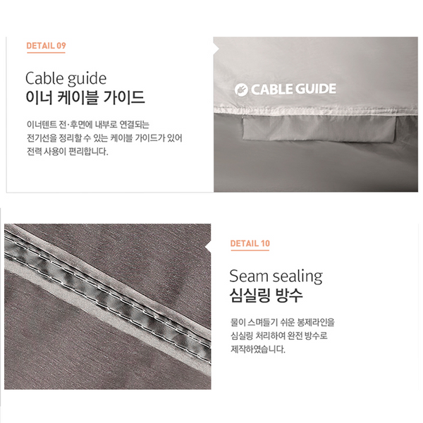 - Component : Body, Inner tent, Ground sheet, Daisy chain, Main pole 2EA, Front·Rear pole 2EA, Ridge pole, Canopy pole 2EA, Steel peg 18EA, String 6EA, Carry bag
