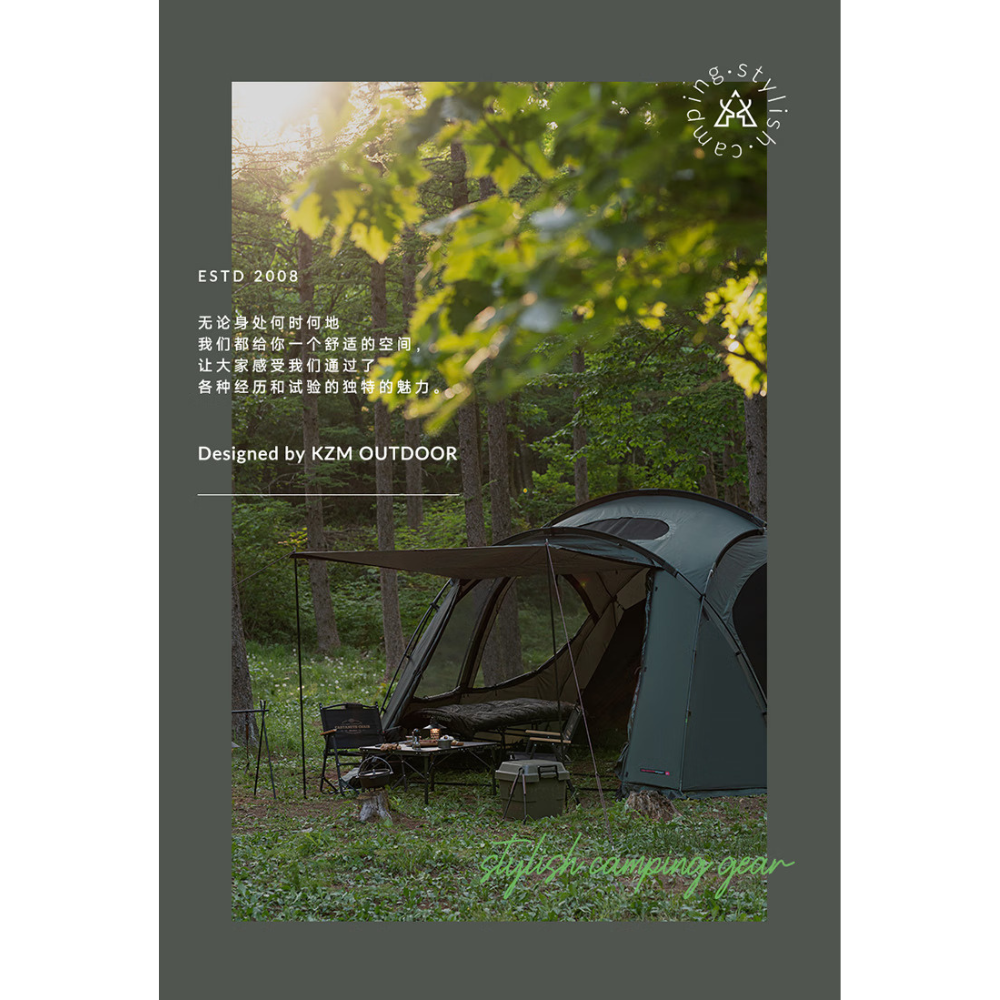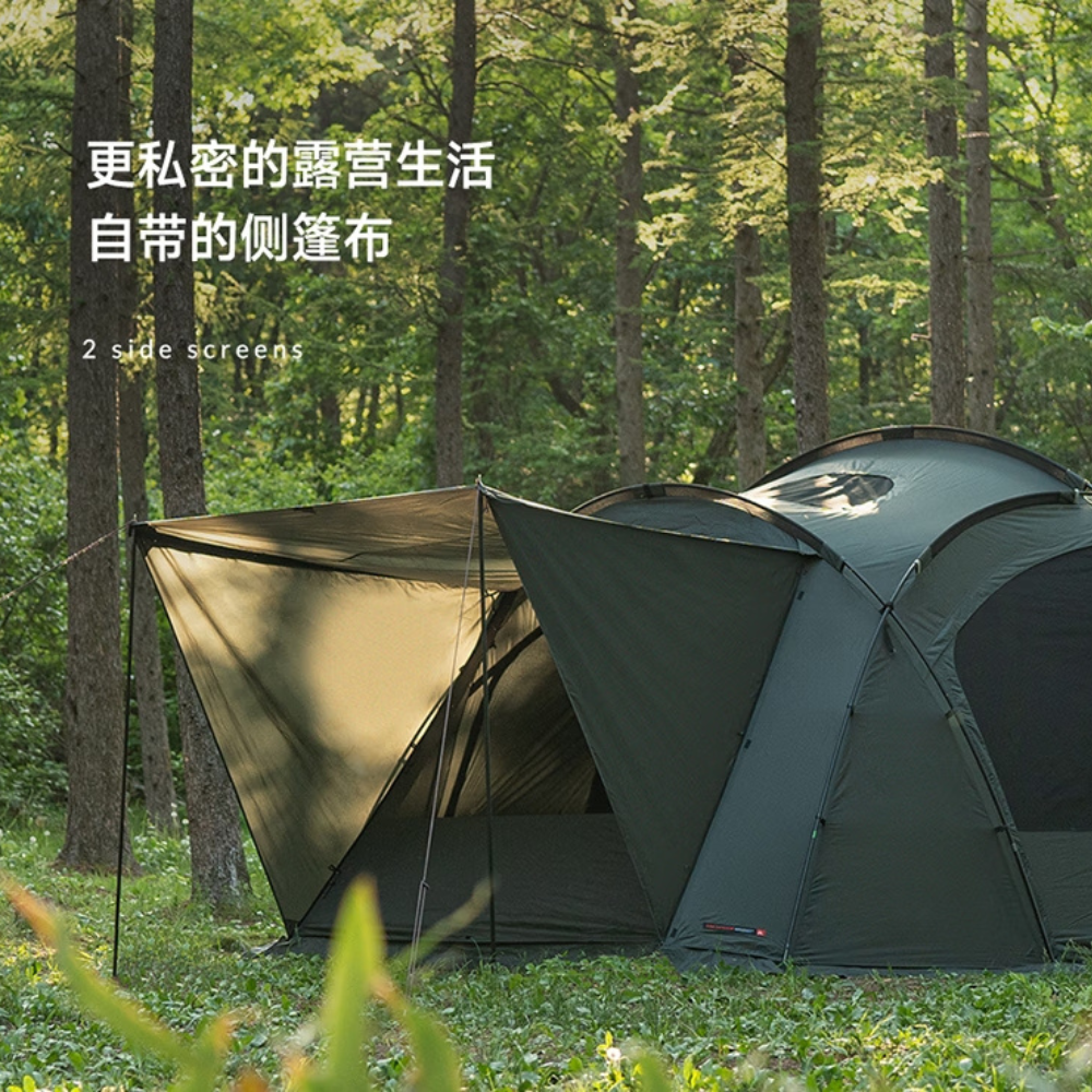 This is a new living shell tent with a unique design and a spacious and comfortable living space. It provides a spacious front room with a width of 440cm and a height of 215cm, and it is possible to stand strong with the side poles. The zerolux system for a comfortable night's sleep is applied to the inner tent, and it provides a good space for 4-5 people. The rear canopy and black pigment-coated roof provide a comfortable living space. A side screen is applied for a private camping life.