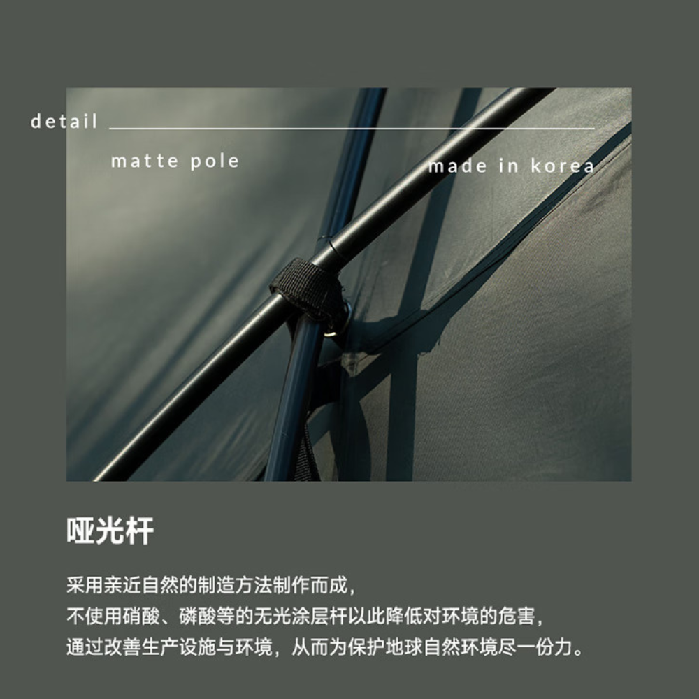 - Pole: Center pole: AL ø19 | Front/Rear/Side pole: AL ø16 | Inner ridge pole: AL ø14.5 | Canopy pole: AL ø16