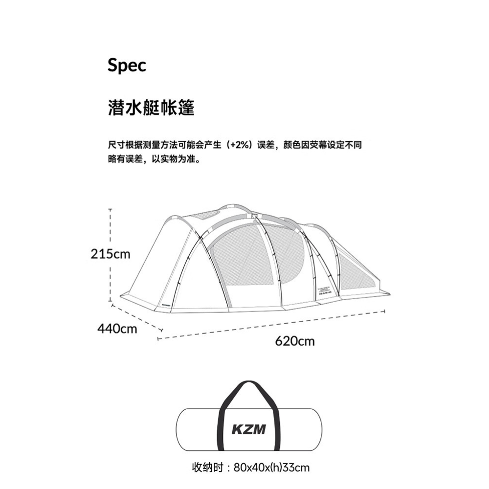 - Dimension: Upon installation: 620 x 440 x (h)215 cm | Storage: 70 x 40 x (h033cm | Inner tent:350(255) x 240 x (h)175cm