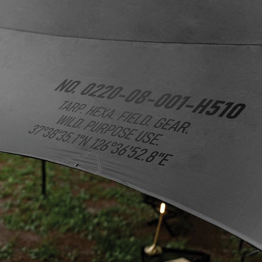 This is a hexa tarp that anyone can easily install, providing a comfortable and spacious resting space at all times with a black pigment coating. It has sufficient waterproofing and water repellency of 5,000mm of water pressure, making it a good product to use even in rainy weather. You can attach various styles of Wappen to the Velcro located on the corner of the tarp, providing the fun of creating your own tarp.