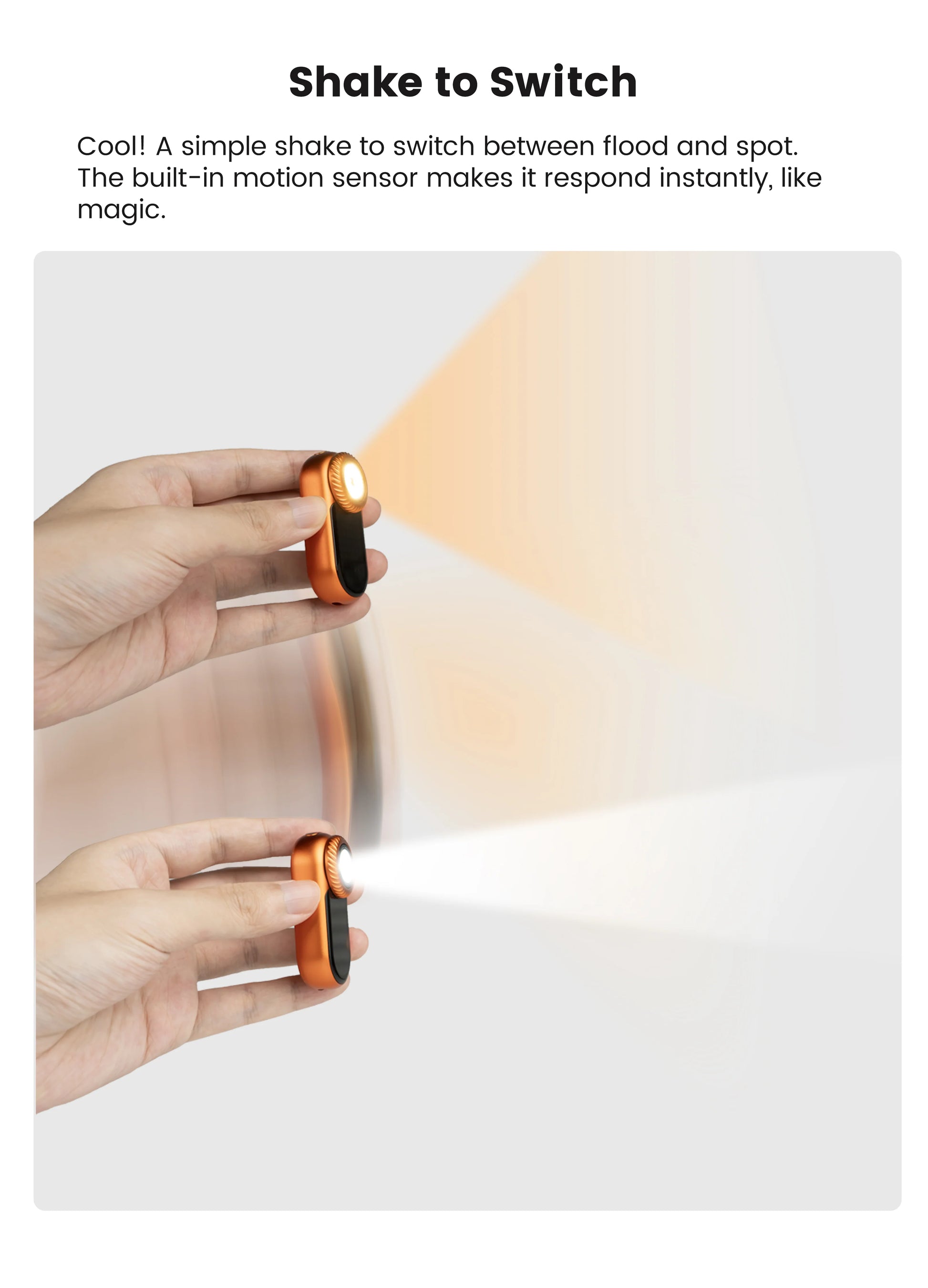 • Shake to switch between flood and spot