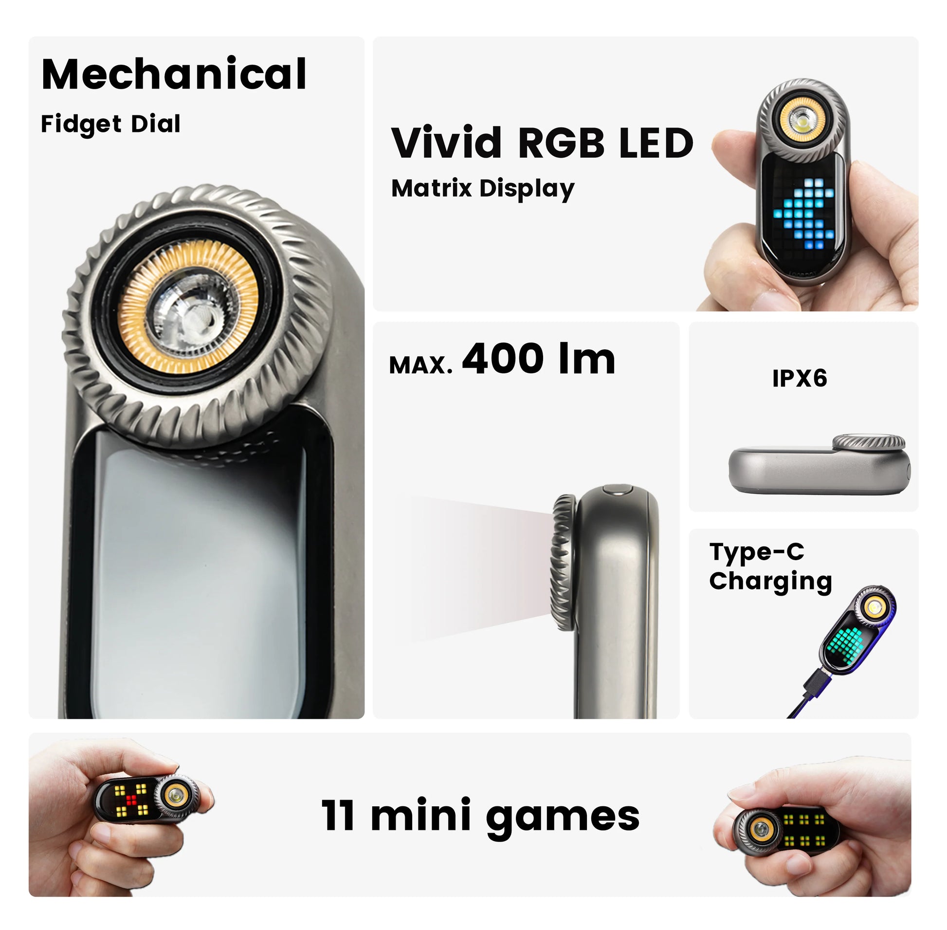 LOOP GEAR LOOPDOT is a compact EDC flashlight that blends practical lighting, a pixel display, and a mechanical fidget dial. Designed for everyday carry with both fun and functional use.