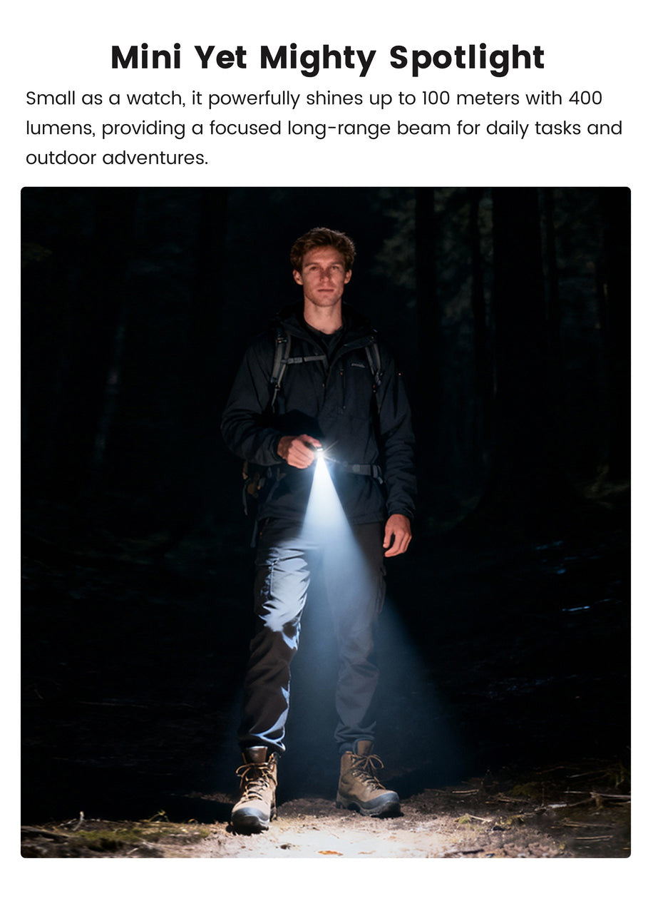 • Turbo: 400–150 lm, 30s + 1.5h