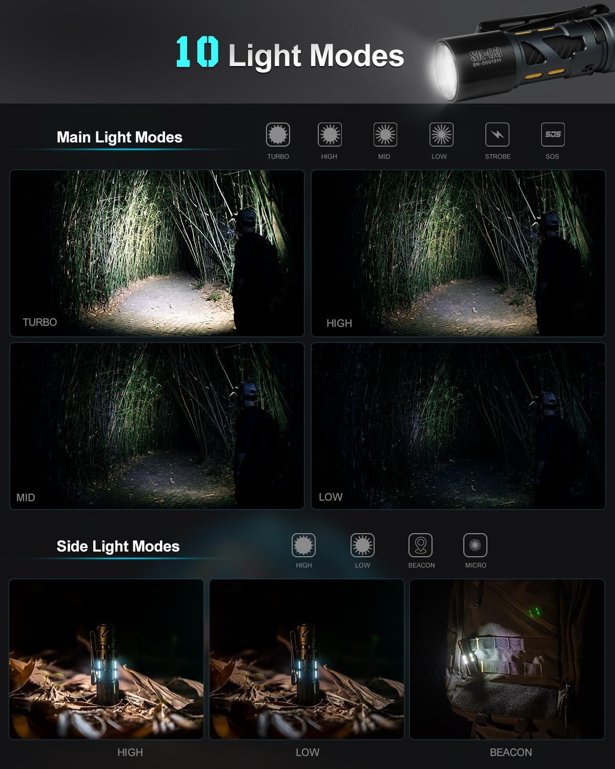 The LOOP GEAR SK03 is a compact and powerful EDC flashlight designed for everyday carry, outdoor use, and emergency situations. It delivers up to 1000 lumens of bright white LED light with a wide 145° beam angle, making it suitable for both focused and area lighting.
