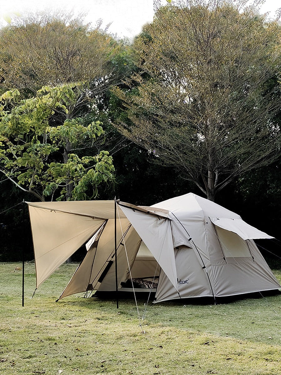 It is a automatic tent suitable for 3-4 person. There is extension for front hall to increase the space use of the tent. Fully enclosed waterproof and wind resistant to meet the needs of everyone when camping in different weather.