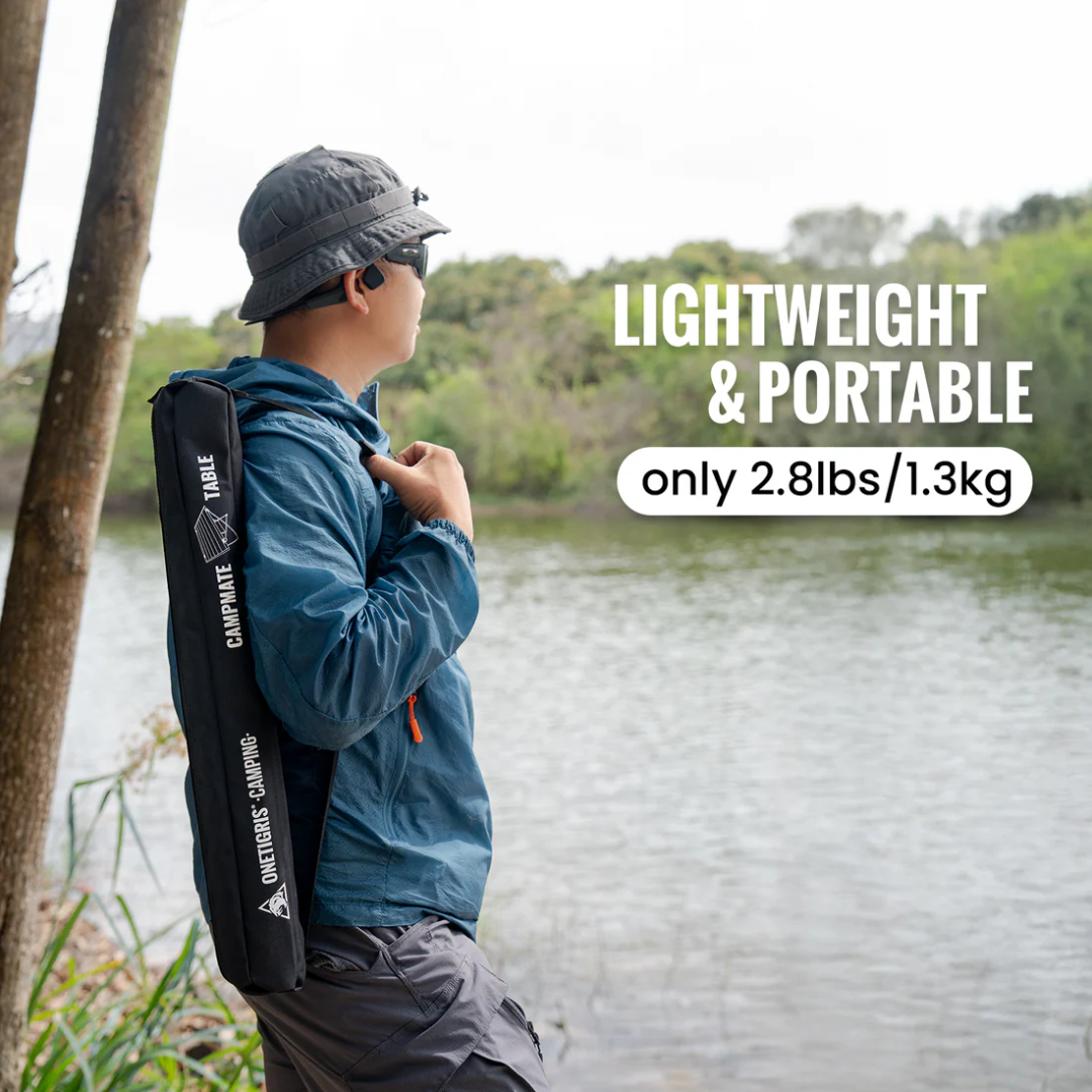 The ultimate portable camping table – Light, sturdy, and adventure-ready! Weighing just 2.8lb (1.3kg) and folding down compactly, this ultralight camping table is your perfect outdoor companion. Built with sturdy aluminum legs and a durable fabric surface, it holds up to 66lb (30kg) while maintaining excellent stability.