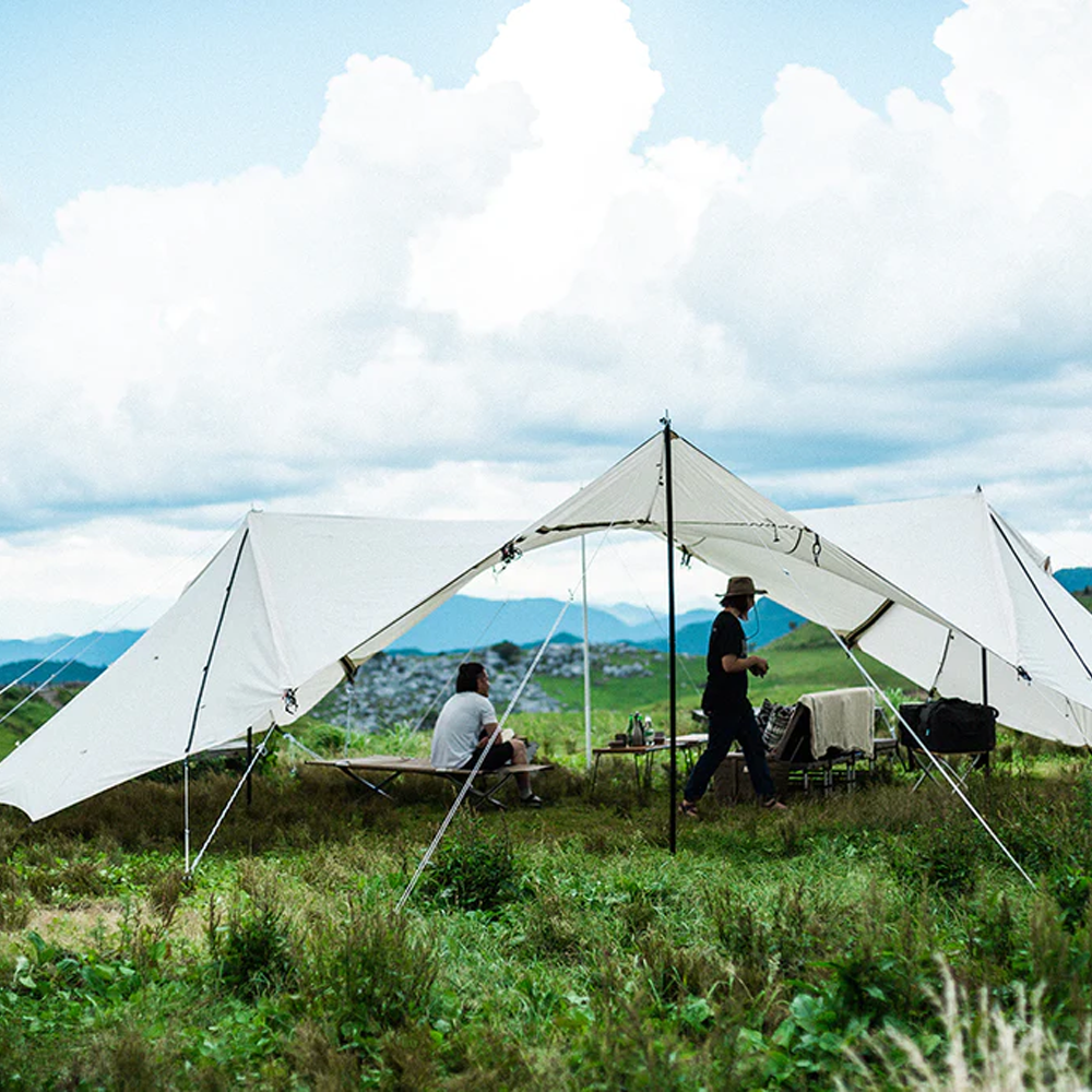 Part of the Snow Peak Ivory Series, the Land Station is a dynamic tarp designed to accommodate up to eight people. With a variety of set-up options, the Land Station Ivory is an eye-catching center piece in any camp field, whether for sleeping or gathering. The Land Station Ivory is designed to offer outstanding protection from the elements and an extra layer in the central roof section provides increased UV protection whilst allowing plenty of light into the shelter.